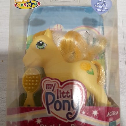 G3 My Little Pony, Birthday Pony June Rose. Uusi, paketissaan. Usan Toys "R" Us Exclusive. Paketissa aavistus kulumaa.