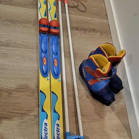 Tecnopro Active Race Skate -merkkiset 158 cm sukset Salomonin siteillä, Fischerin 34 koon Skate J9000 monot sekä sauvat. Pientä käytön jälkeä löytyy, mutta hyvä paketti vielä seuraavalle.