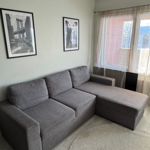 Hyvässä kunnossa oleva levitettävä vuodesohva.