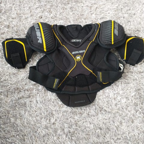 Hartiasuojat. Koko on int eli noin 170cm pelaajalle sopii