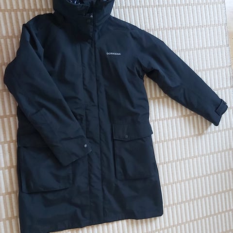 Didriksons tove wns naisten kevyt talvitakki / toppatakki / parka, koko 42 ( xl). Mielestäni sopii myös 40 (L) kokoa käyttävälle, vyötätöllä kiristysnaru. Kuvassa S- kokoisen päällä. Väri musta ja materiaali polyesteri. Miellyttävä pehmeä kangas. Pieni 1cm viilto ommeltu kiinni hihasta ja päälle ommeltu heijastin (katso kuva). Lisätty muitakin heijastimia. Muuten kunto hyvä ja vetoketju toimii moitteettomasti. Yleisilme siisti.