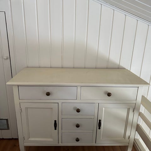Senkki, käytettynä saatu. Pidetty siistinä, mutta pieniä kulumia. Päälli levyssä kulumaa (tästä kuva) ei näy paljoa päälleppäin mutta kulumaa kuitenkin. Yhdessä pienessä laatikossa hieman tummempaa pinttymää ja yhden laatikon sisäpuolella kulumaa. Näitä lukuun ottamatta siisti ja hyvässä kunnossa