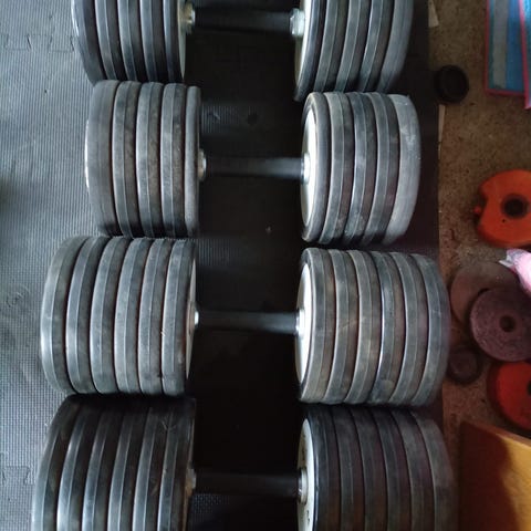 Hyvät käsipainot.3kg8,5kg14kg19,5kg25kg kpl Nouto Kärkölästä. Näitä siis pari.