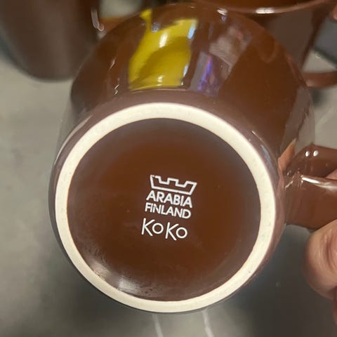 Arabia Koko- sarjan ruskeat posliinikupit (2 kpl).