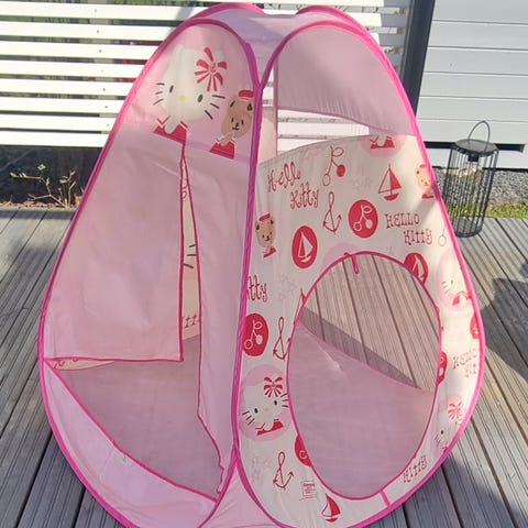 Vähän käytetty. Ikkunat ja oven saa rullattua ylös. Värinä puu/luonnonvalkoinen. Mitat noin 120x140x160. Mukaan saa kuvan kukkakoristeen. Muistaakseni ostettu Jollyroomista.