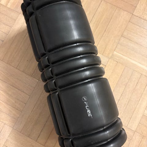Hierontasetti: foamroller kovahko rullaa, tuplafaskiapallo ja qua sha krapa.