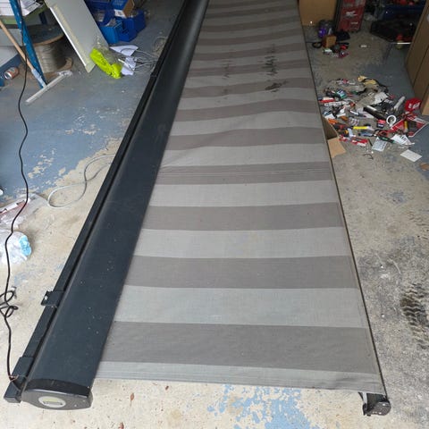 Sähkökäyttöinen ja kaukosäädettävä.aukeaa 2,5-3,5 metriä.Myös kaltevuutta mahdollista säätää