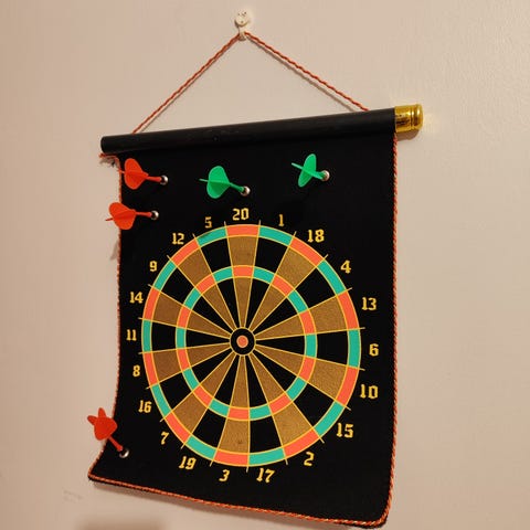 Tikkasetti, jossa on kolme metallirunkoista tikkaa, muovinen säilytyskotelo sekä useita varalapoja eri kuoseilla. Settiin kuuluu myös vaihtokärkiä. Sopii sisä- tai ulkokäyttöön tikkataulun kanssa. Rungot ovat metallia ja lavat muovia.Vähän ollut käytössä.