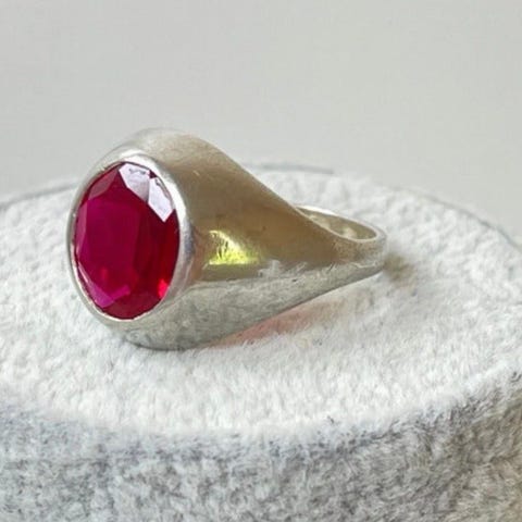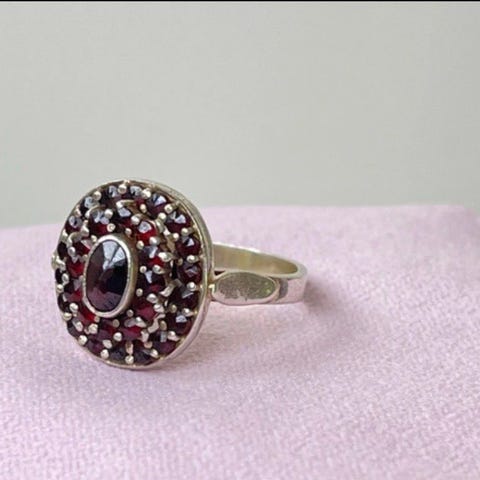Vintage Hopea 830 kullattu Sormus, 8 granaattikiveä