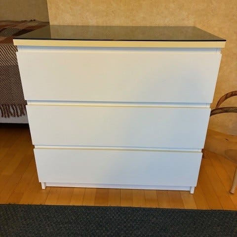 3 kpl Ikea, MALM Lipasto, 3 laatikkoa, valkoinen + lasilevy - Salo, Perniö
