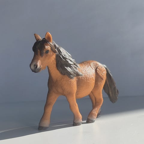 Jälkeä jo paljon mm. harja, turpa, kaviot ja jalat. Maalikulumaa myös siellä täällä. Rambon tallissa kulkee nimellä Shetan.