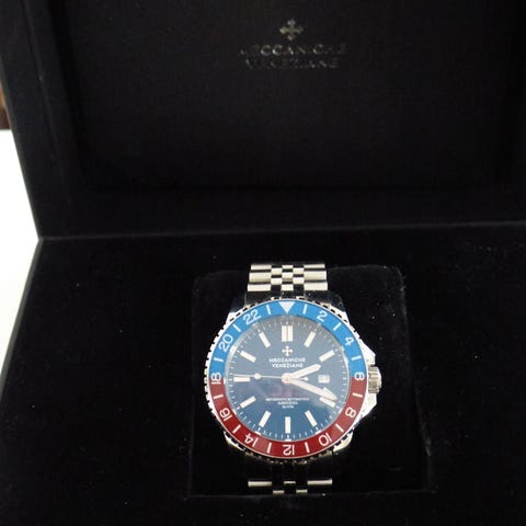 Uusi Paganin GMT pepsi mustalla kumi- ja nahka(?) rannekkeilla. Ranneaikaa n. 2 vuorokautta. Ei sopinut Pepsi itselle.