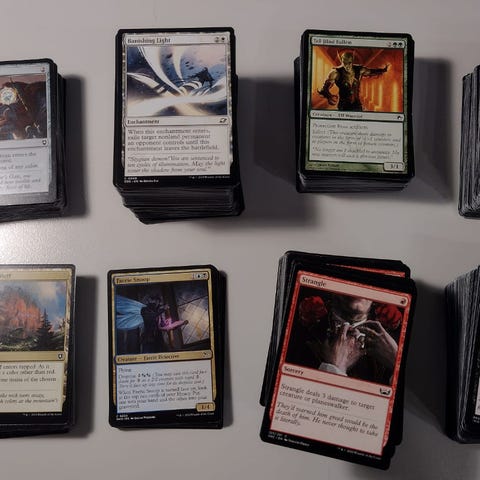 Myydään n. 120 kpl MTG-uncommoneita, Enimmäkseen uusia painoksia (2015-2024), muutamia vanhempiakin joukossa. Jonkun verran tuplia. Kaikki englanninkielisiä. Ei foileja. Ei landeja.
