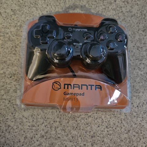 Manta MM813 peliohjain. Johdollinen ohjain, jossa on kaksi analogista tattia, ristiohjain ja toimintonäppäimet. Väri musta. Sopii tietokoneelle tai yhteensopiville laitteille, joissa on USB-liitäntä (tarkemmat järjestelmävaatimukset pakkauksen ohjeissa).