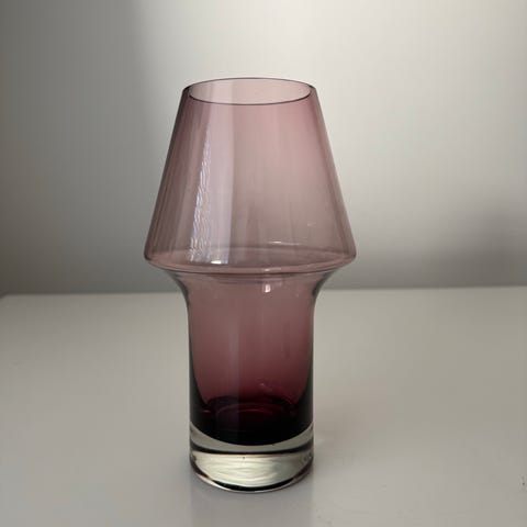 1960-luvun lasiaarre Riihimäen lasin Stromboli maljakko. Korkeus 25cm.