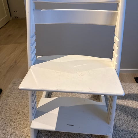Stokke Tripp Trapp syöttötuoli/ juniorituoli. Istuimen ja jalkalaudan korkeutta ja syvyyttä voi muuttaa lapsen kasvaessa. Käytön jälkiä ja kulumaa maalipinnassa, jotka näkyy kuvissa. Tukeva ja ehjä.