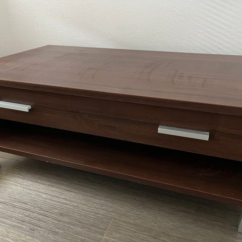 Myydään kaunis ja ajaton kalustekokonaisuus: tukeva puinen sohvapöytä sekä 2 kpl mukavia, pehmeästi verhoiltuja nojatuoleja.