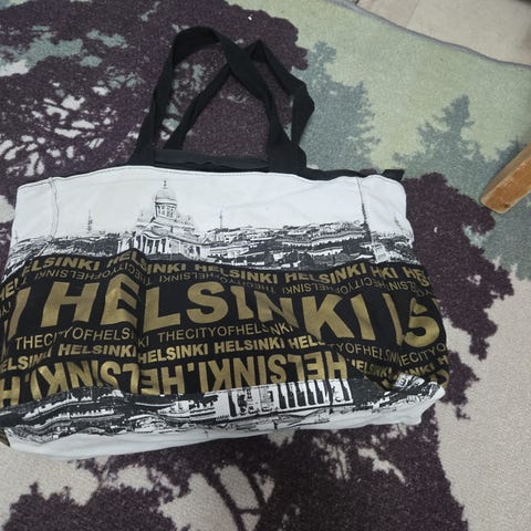 Martinex Mauri Kunnas -aiheinen kangaskassi. Koko n.31,5x38cm. Kerran pesty. Vähällä käytöllä loppupeleissä ollut.