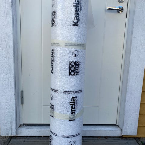 En ole mitannut, mutta on tässä reilusti jäljellä, useampi metri joka tapauksessa. Aevelisin, että noin 7-10 metriä. Rullan leveys on 120cm.