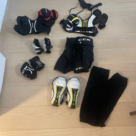 CCM jääkiekkosuojasarja juniorille. Pakettiin kuuluu useita suojavarusteita jääkiekkoon, kuten polvisuojat, kyynärsuojat, hartiasuojat, housut, hanskat. Soveltuu jääkiekkoharrastukseen nuorille pelaajille, tarjoten perussuojauksen koko vartalolle harjoituksiin ja peleihin.