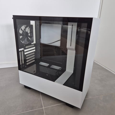 Hyte Y60 tietokonekotelo, jossa valkoinen runko ja kolme extra rgb tuuletinta lisättynä. Vertical GPU mount. Vain nouto puistolasta