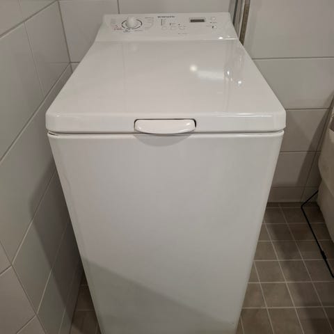 Toimiva pesukone, 7 kg. Alaosan peitesuoj puuttuu. Minusta Hyvä kone vaikka tuntemattomampi merkki. Muutaman vuoden vanha