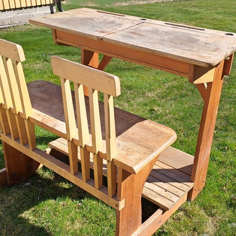 Annetaan jollekin vanhan aikainen pulpetti joka on maalattu vaaleanpunaiseksi ennen kun se minulla ollut.