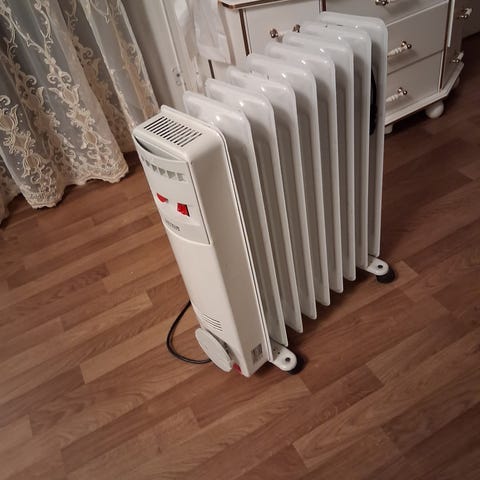 Öljytäytteinen sähkölämmitin valkoinen pyörillä