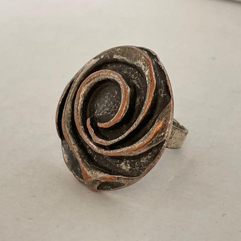 Ilmeisesti käsityönä tehty kaunis ja näyttävä sormus. Nouto Helsinki Kannelmäki tai postilla.