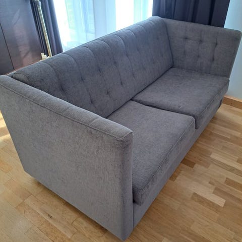 Melko siisti vaalea pieni vuodesohva. Levitettynä 100cm leveä. Sohvassa joitakin tahroja jotka varmasti lähtee pienellä pesulla. Nopea nouto härmälänrannasta!