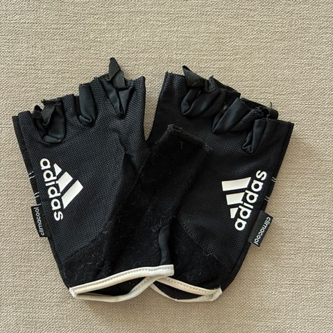 Käyttämättömät kevlar-vahvisteiset painonnostohanskat rannetuilla.