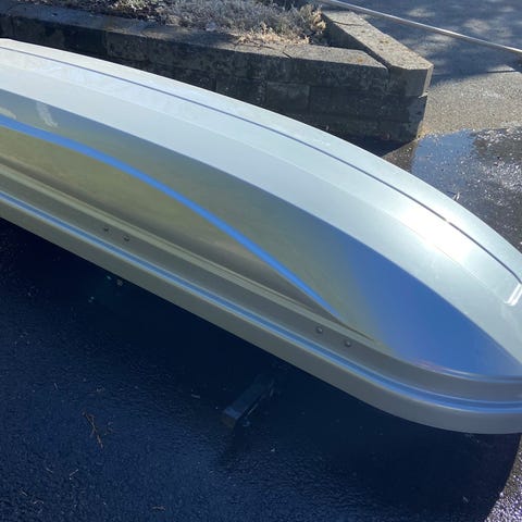 Jetbag kattoboksi henkilöauton kattotelineisiin. Väri musta, kyljissä oranssit tehosteraidat. Soveltuu lisäkuljetustilaksi esimerkiksi matkatavaroille tai urheiluvälineille. Kiinnitys tapahtuu auton kattotelineisiin, kiinnikkeet näkyvät kuvissa. Tarkemmat mitat ja tilavuus eivät käy ilmi kuvista, joten ne on hyvä mitata paikan päällä auton ja kattotelineiden mukaan yhteensopivuuden varmistamiseksi.