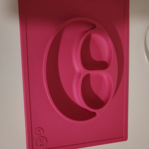 - 2 kpl Nattou -merkkisiä silikonilautasia. Vaaleanpunainen syvä lautanen ja ruskea matala lautanen.