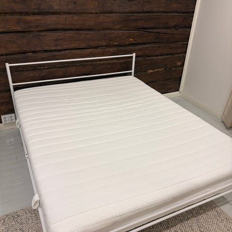 Metallinen sängynrunko yhteensopiva 160x200 patjan kanssa. Ollut itsellä käytössä vähän reilu vuoden, on siis kuin uusi. Mukana kokoamisohje, myydään purettuna.