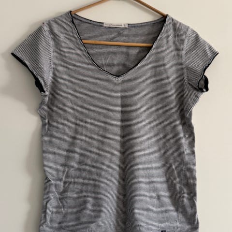 Pelle P sininen puuvillatunika, koko S. Mallissa on 3/4-pituiset hihat ja V-pääntie. Pituus ulottuu noin reiden puoliväliin, ja helmassa on kevyt A-linjainen leikkaus ja taskut.