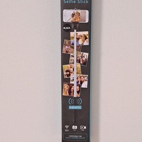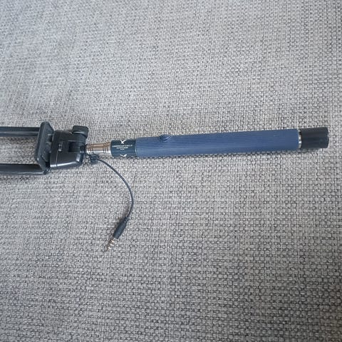 PNY langaton selfie-tikku, yhdistyy älypuhelimeen Bluetoothin kautta, kahvassa painike kameran laukaisemista varten. Pituus 80 cm