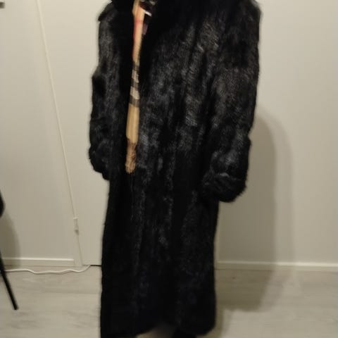 Musta pitkä minkkiturkki 40-42 kokoiselle naiselle.