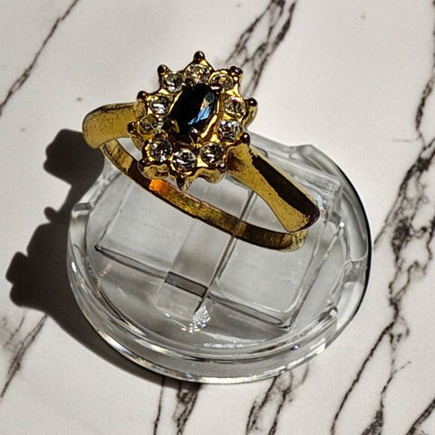 Täydellisessä kunnossa. Kullattu safiiri sormus. Koko 18mm