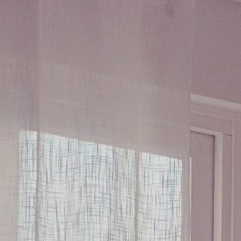 Verho on ohuehko, läpikuultava, päästää valoa läpi, mutta tuo näkösuojaa. Kaunisti laskeutuu