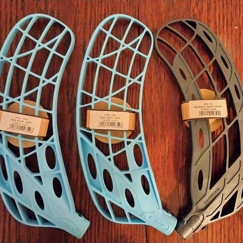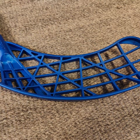 Testattu jolloin sisimmäinen muoviosa taittunut ja revitty, varren saa kiinnitettyä tästä huolimatta(tarvittaessa liimalla) mukana ei ole kiinnitys ruuveja. Ei käytetty. Salming salibandylavan lapa. Väri musta.
