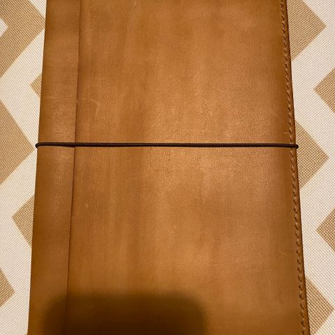 Myytävänä uudet nahkaiset kalenterin kannet. Koko A5 ja renkaat 16 mm.