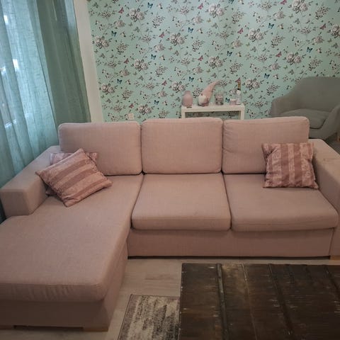 Maskusta joskus ostettu Bellus sohva. Kulumia ja käytönjälkiä löytyy, on kuitenkin ehjä.