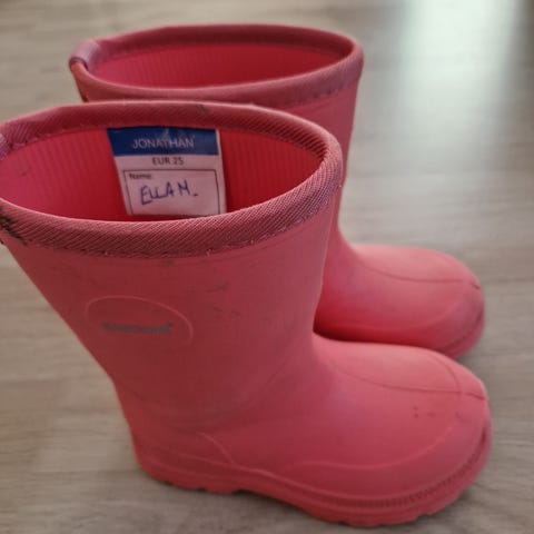 Jonathan lasten vuorelliset saappaat tytöille, koko 25. Väriltään pinkit kumisaappaat, joissa on lämmin villavuori sisäpuolella. Suojaavat kosteudelta ja parantavat pitoa liukkaalla. Varressa lenkki helpottamassa pukemista. Soveltuvat kylmään ja kosteaan säähän, esimerkiksi päiväkoti- ja ulkoleikkeihin. Hyvä kuntoiset. Uutena ostettu ja olleet yhdellä käytössä.