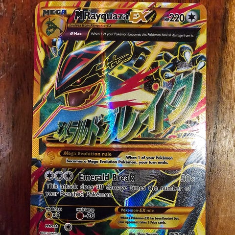 Pokémon Rayquaza keräilykortti vuodelta 2005. Kortissa on 80 HP ja hyökkäykset Dragon Dance ja Dragon Claw. Kortin alareunassa sarjakoodi LDM-09/7la Sopii Pokémon-keräilyyn ja pelikäyttöön. Kunto hyvä holo saa laittaa tarjouksia.