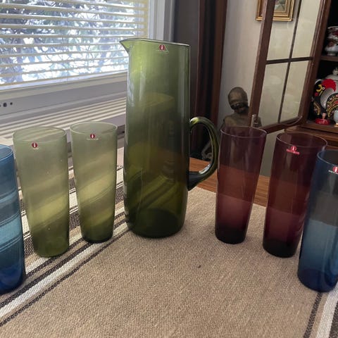 Myydään erittäin siistikuntoiset, vähälle käytölle jääneet, vitriinissä säilytetyt Iittalan Marimekko lasikulhot. Ehjiä. Neljässä pohjassa Marimekko painatus, yhdessä ei mutta tässä Iittala tarra.