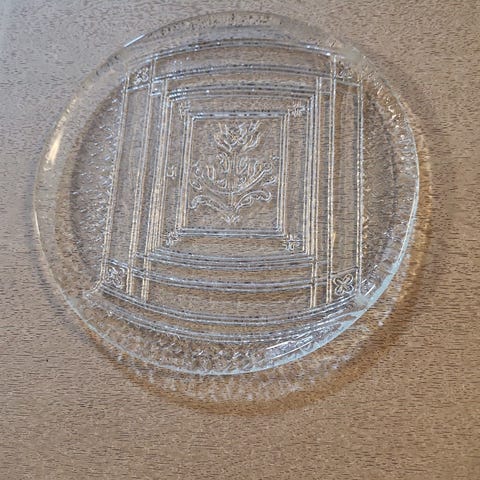 Lasiset leipälautaset. Lautasen halkaisija 15 cm.