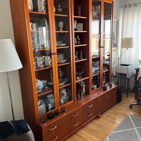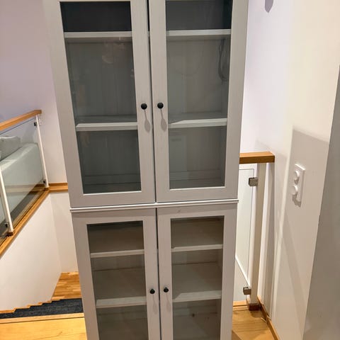 2 kpl 120x40x38 runkoa, joista toisessa vitriiniovet, toisessa nyt toinen vitriiniovi, toinen kiiltovalkoinen, mutta mukaan saa halutessaan myös toisen kiiltovalkoisen, joka mahdollista vaihtaa lasioven tilalle.