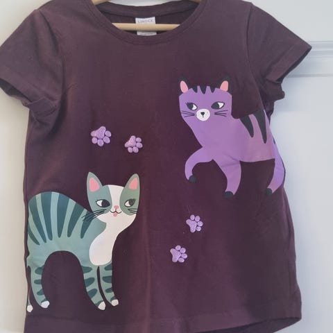Luumunvärinen kissoja t-paita/lyhythihainen koko 110cm