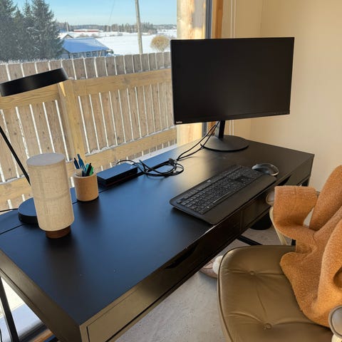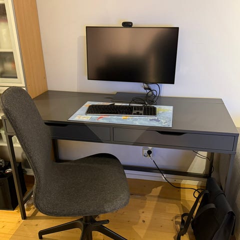 Työpöytä on Alex-merkkinen, ostettu aikoinaan Ikeasta