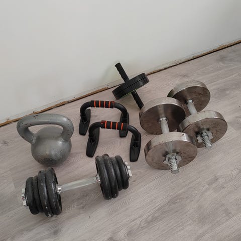Uudet käsipainot (5kg), kahvakuula (12kg), 4 erilaista vastuskuminauhaa, käsipainosarja 20kg saakka. Meidän taloudessa jäi pölyttymään. VAIN NOUTO, sijaitsee Kirkkonummen Kolsarissa. Maksu mobilepay tai käteinen.